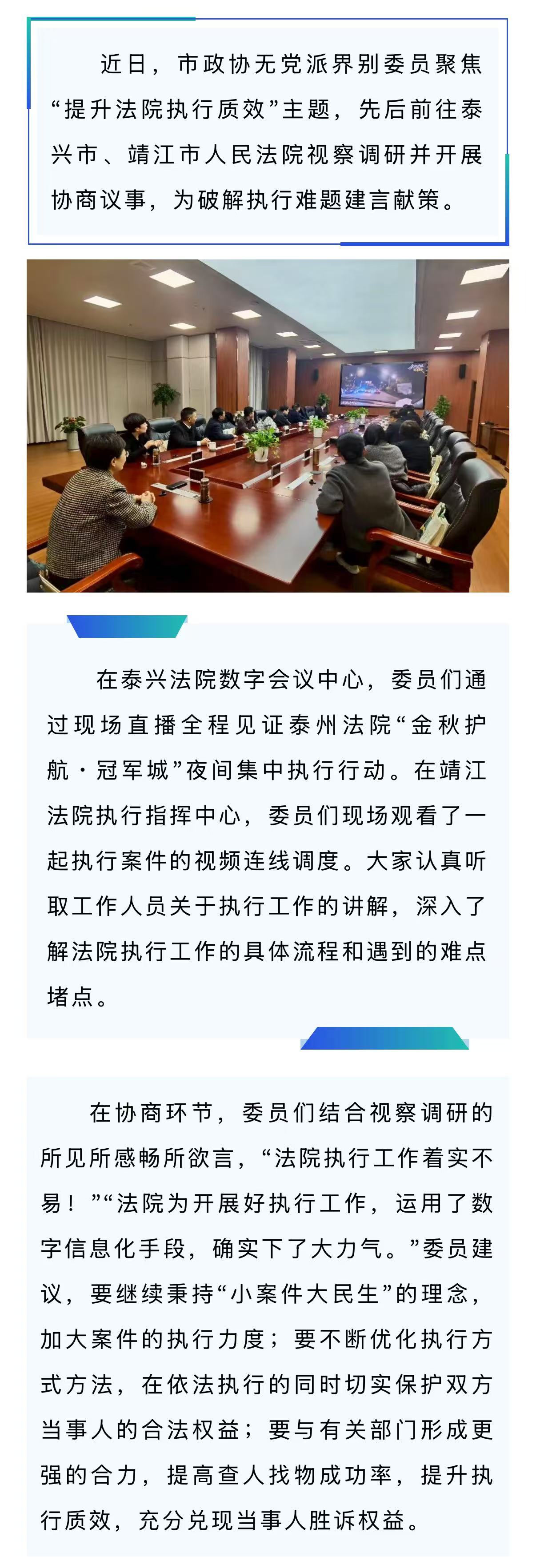 市政协无党派界别围绕“提升法院执行质效”开展协商议事活动