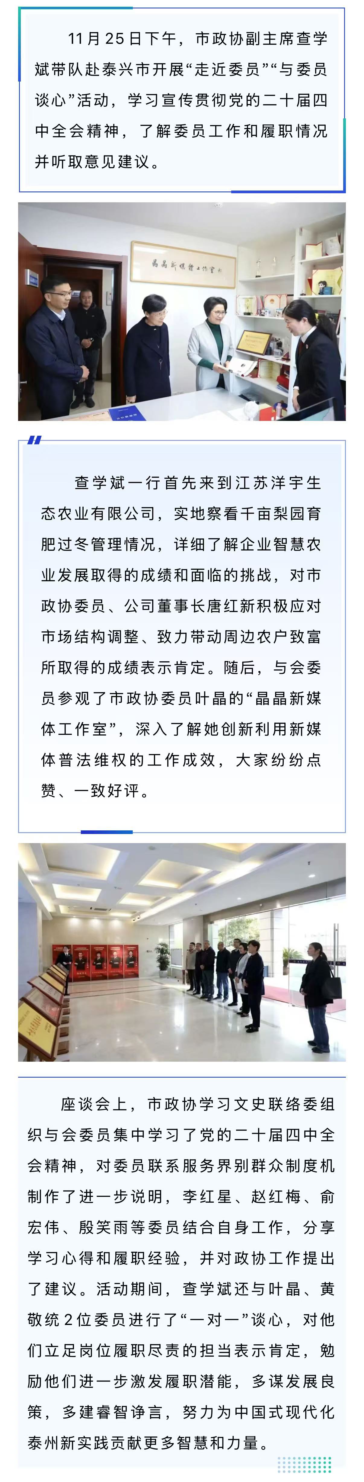 市政协副主席查学斌开展“走近委员”“与委员谈心”活动