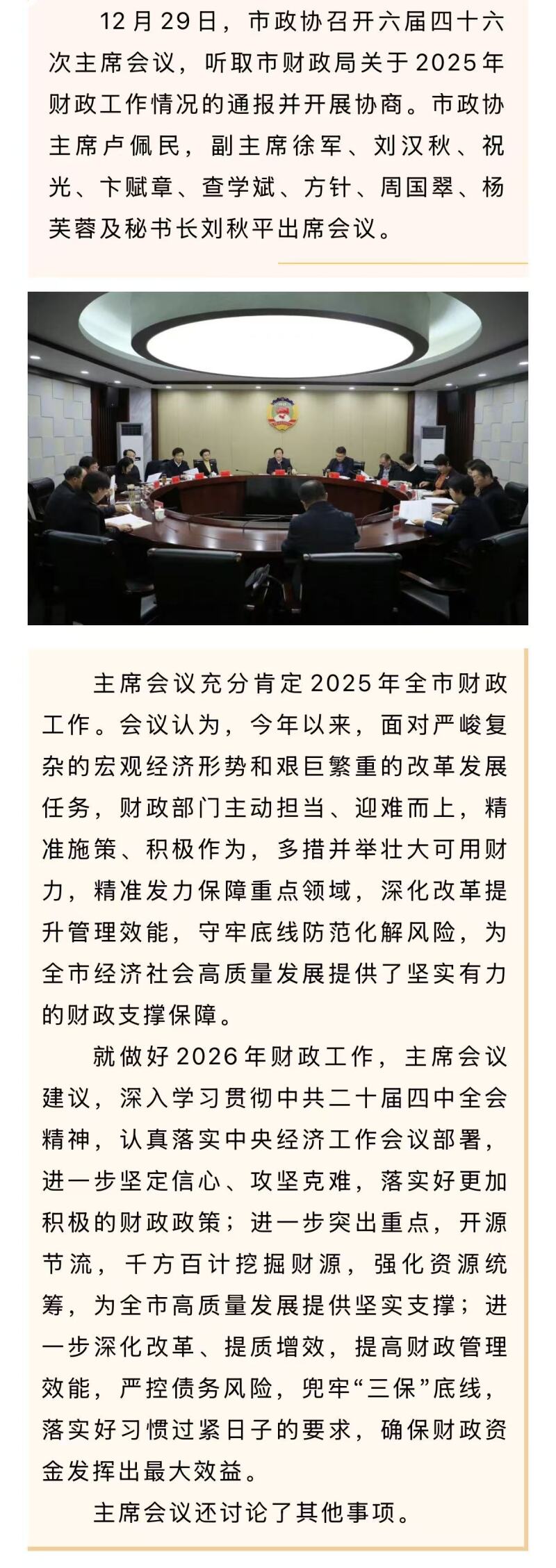 市政协召开六届四十六次主席会议