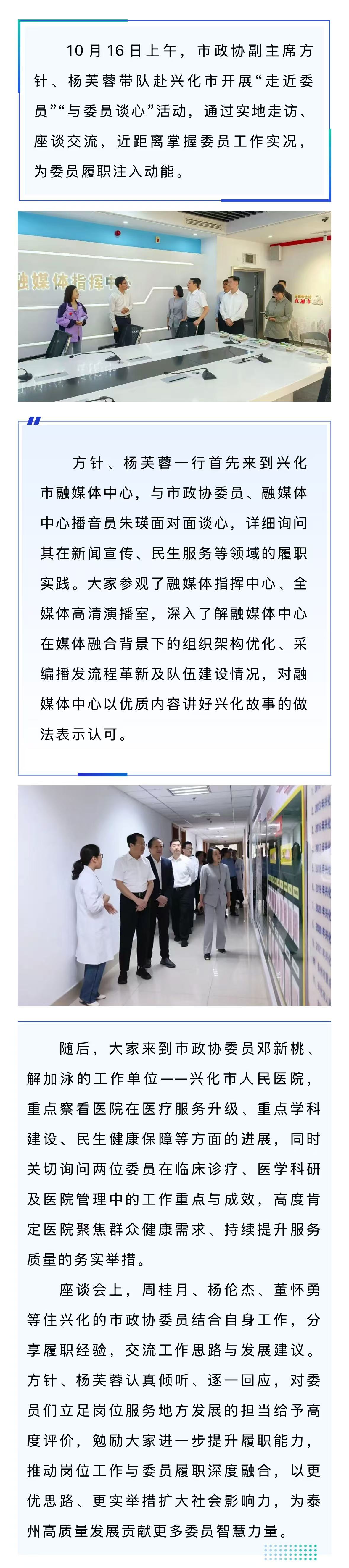 市政协副主席方针、杨芙蓉“走近委员”开展谈心活动