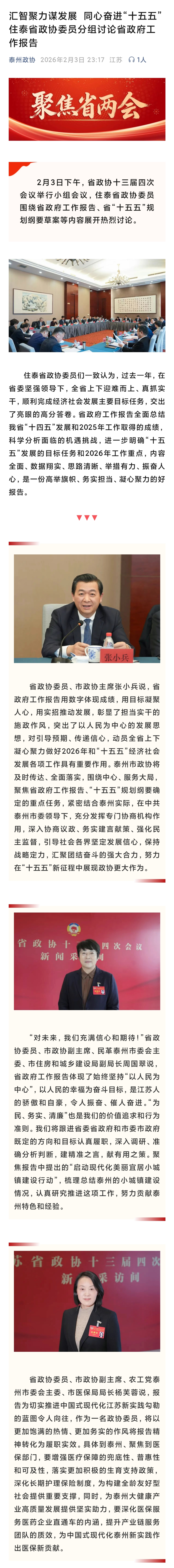 汇智聚力谋发展 同心奋进“十五五” 住泰省政协委员分组讨论省政府工作报告