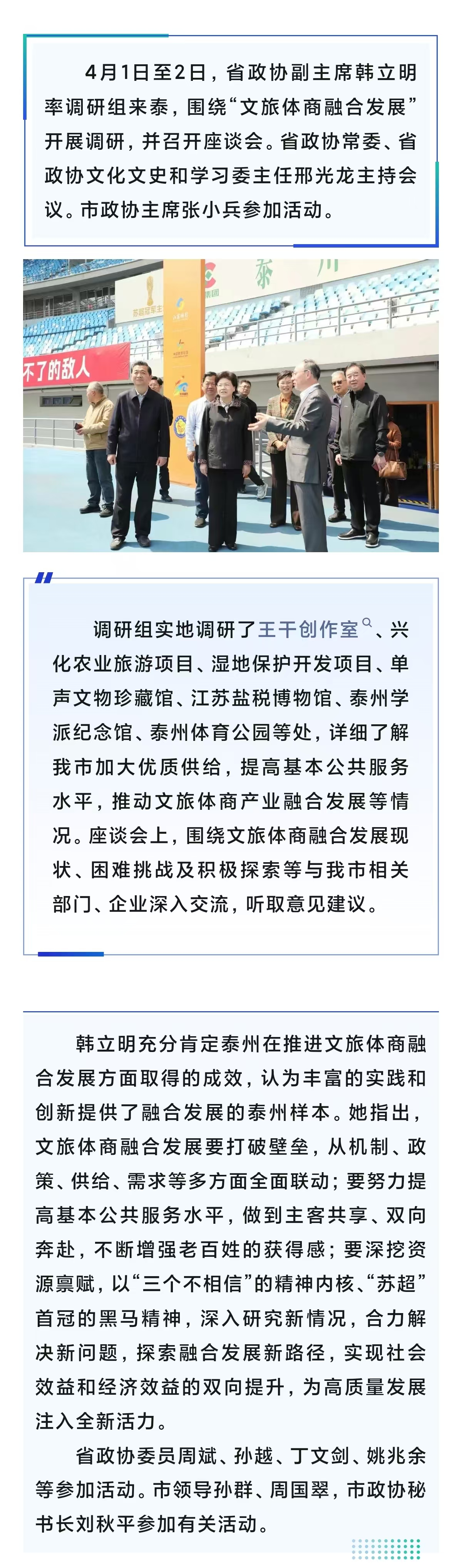 省政协领导来泰开展专题调研