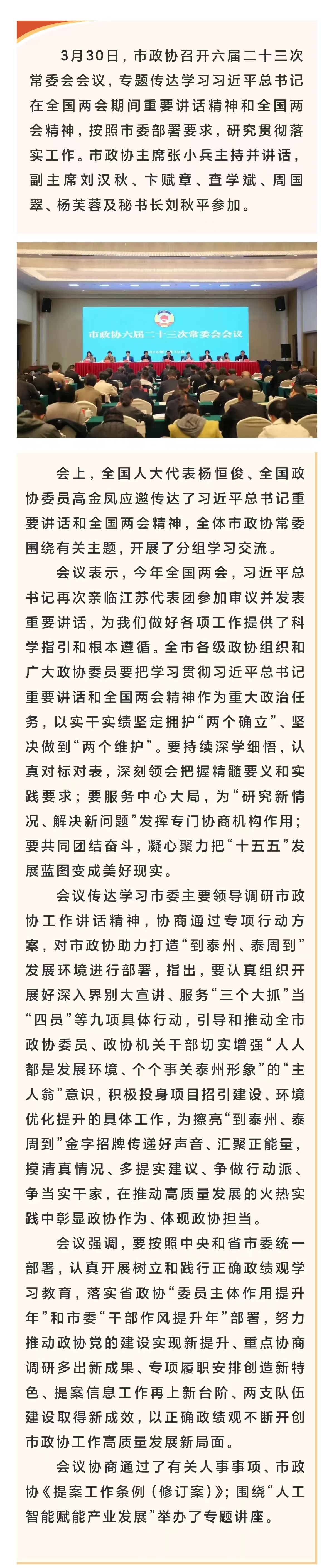 专题传达学习习近平总书记重要讲话和全国两会精神 市政协召开六届二十三次常委会会议