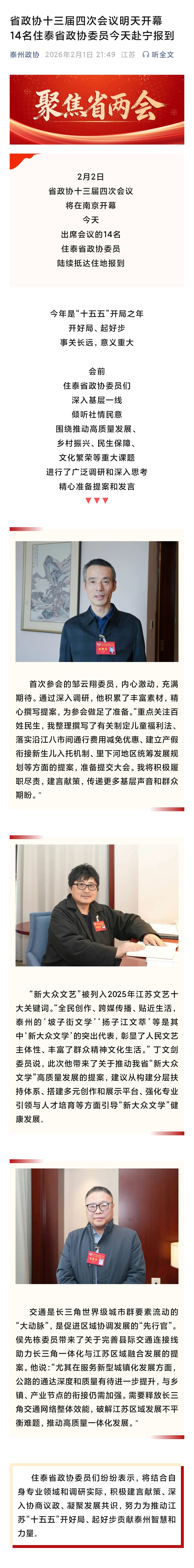 省政协十三届四次会议明天开幕 14名住泰省政协委员今天赴宁报到