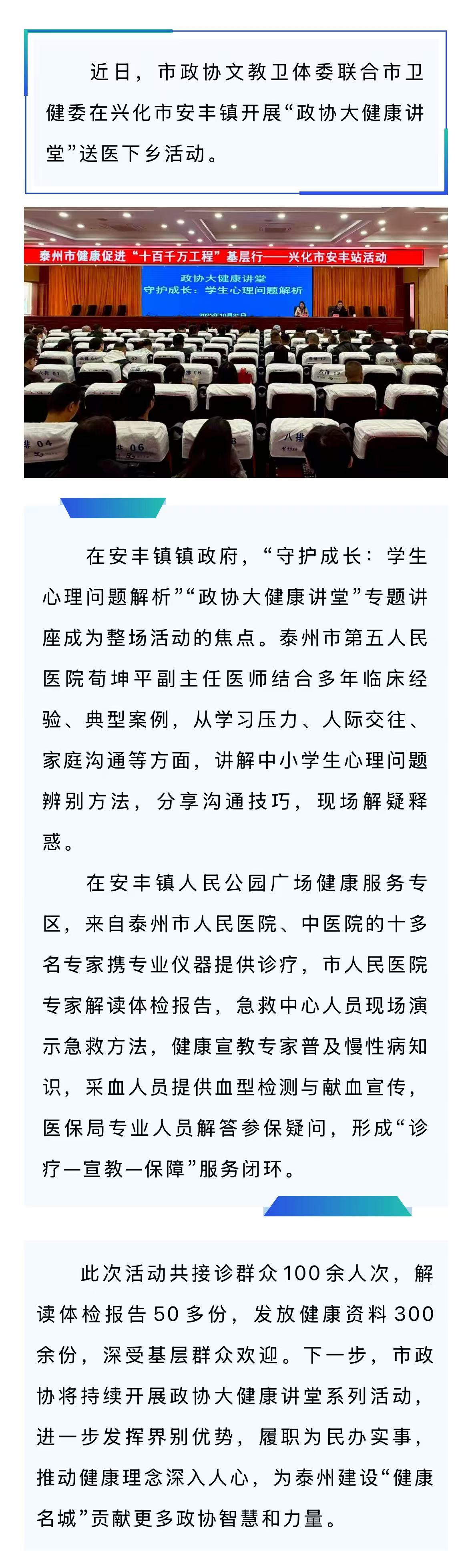 “政协大健康讲堂”走进兴化安丰
