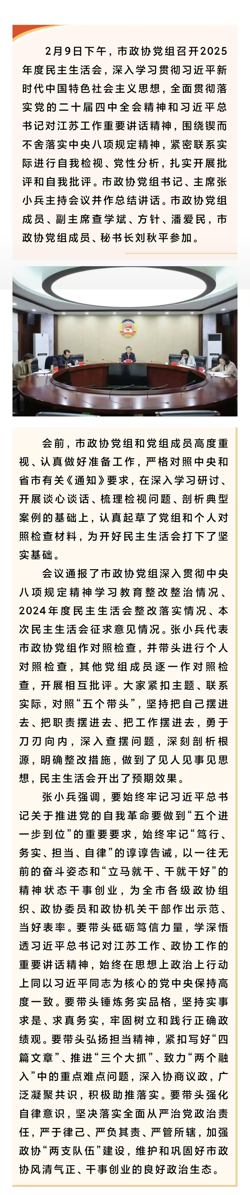 市政协党组召开2025年度民主生活会