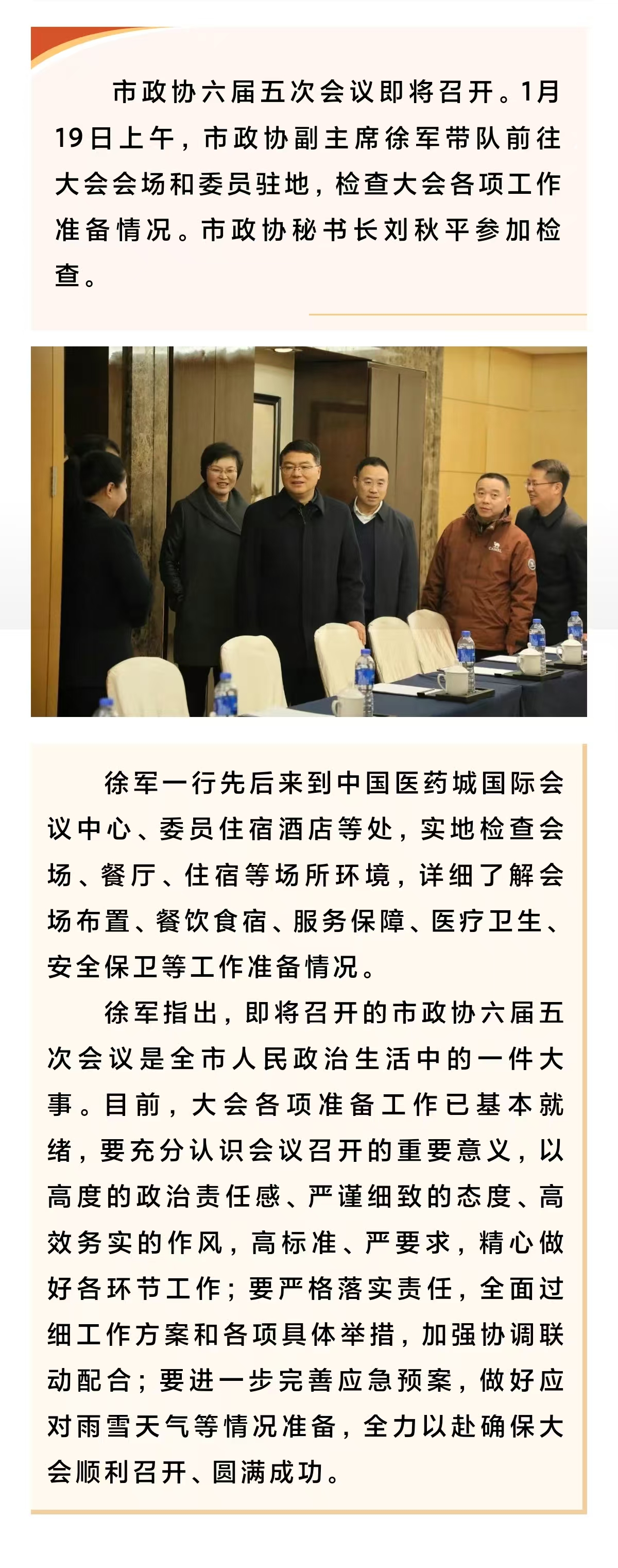 市领导检查政协六届五次会议准备工作情况