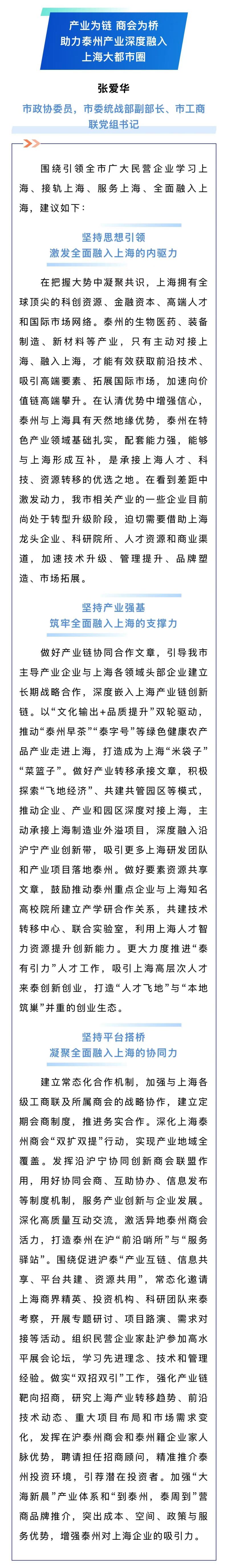 张爱华:产业为链 商会为桥 助力泰州产业深度融入上海大都市圈