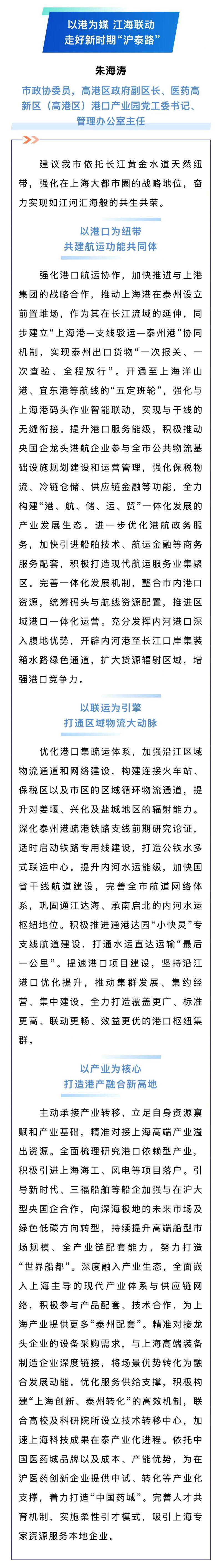 朱海涛:以港为媒 江海联动 走好新时期“沪泰路”
